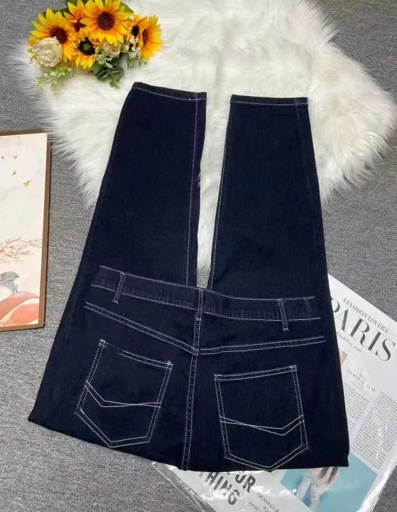 秋季新品洗水棉网红复古高弹力高腰宽松牛仔老爹哈伦裤...