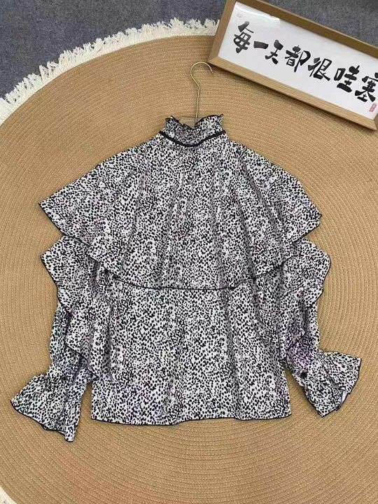 系带立领荷叶边长袖72件5.9,面料柔软,喇叭袖,码数1...
