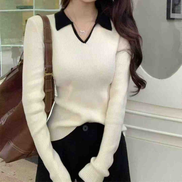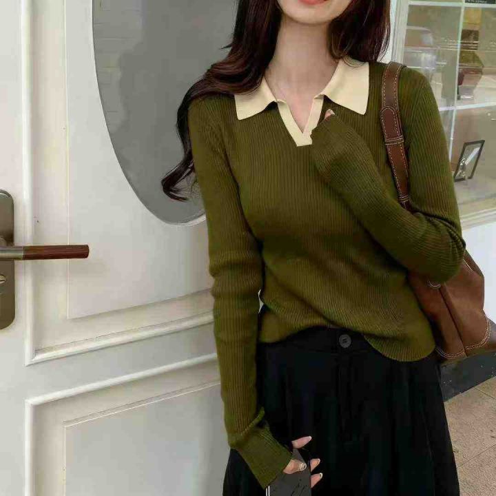 品牌原单秋季新品法式气质高级感Polo领长袖套头毛衣,...