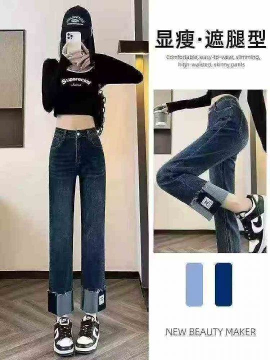 品牌烟管显瘦宽松设计感高腰阔腿直筒牛仔裤420件,有弹力,品质好可入实体店,独立包装带吊牌,码数XS- XL,全清7.8元秒
