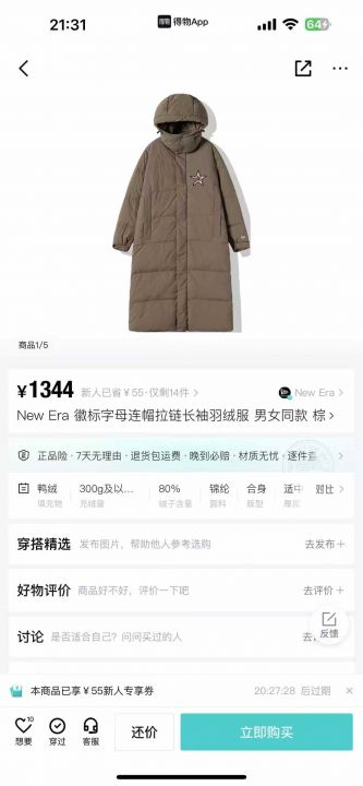 纽亦华长款羽绒服外套500件。 货号:2978...