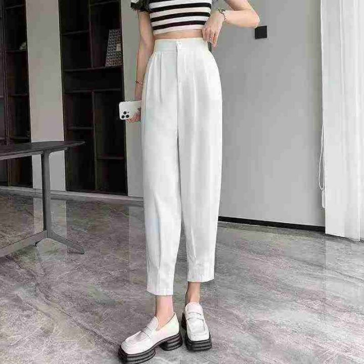 品牌高品质女裤系列~休闲束脚九分高腰宽松哈伦裤显瘦西装裤,整款三色,裤头内里包边包条,做工精致面料好,数量176条,码数M-2XL,独立包装带吊牌