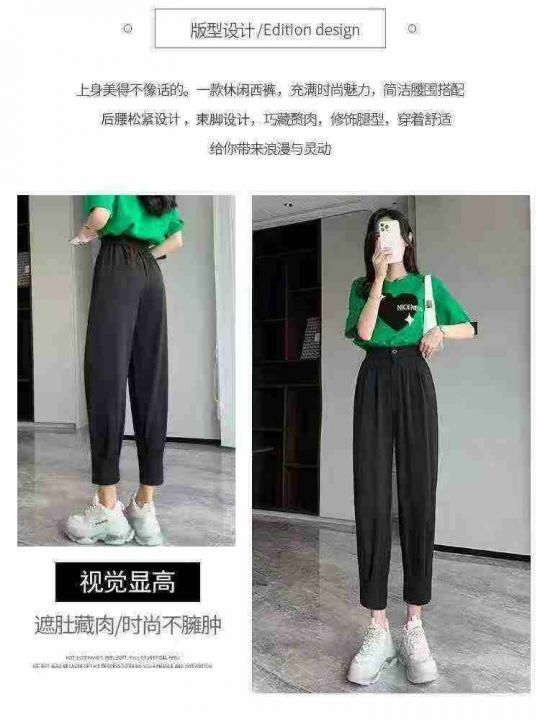 品牌高品质女裤系列~休闲束脚九分高腰宽松哈伦裤显瘦西装裤,整款三色,裤头内里包边包条,做工精致面料好,数量176条,码数M-2XL,独立包装带吊牌