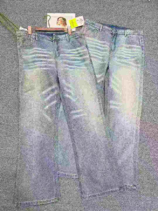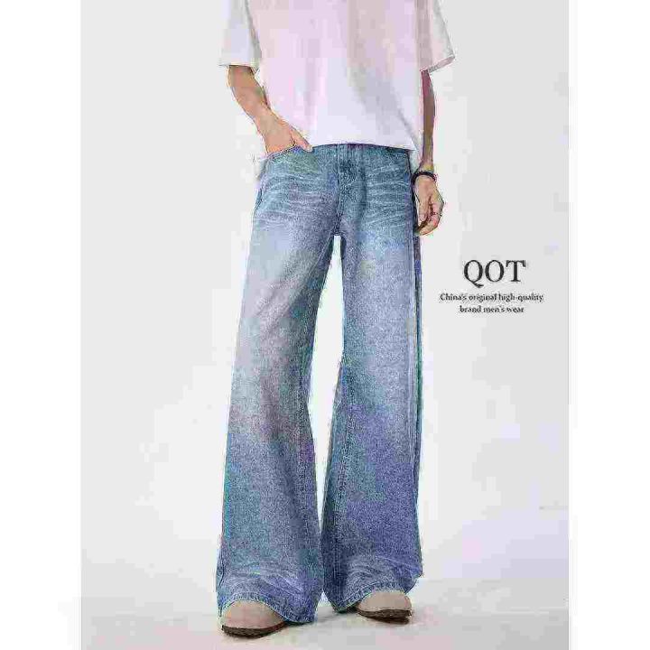 2025水洗冰蓝色磨白猫须直筒微喇牛仔裤男复古百搭宽松裤子情侣,独立包装,码数M-4XL,数量112条,全清11.8元