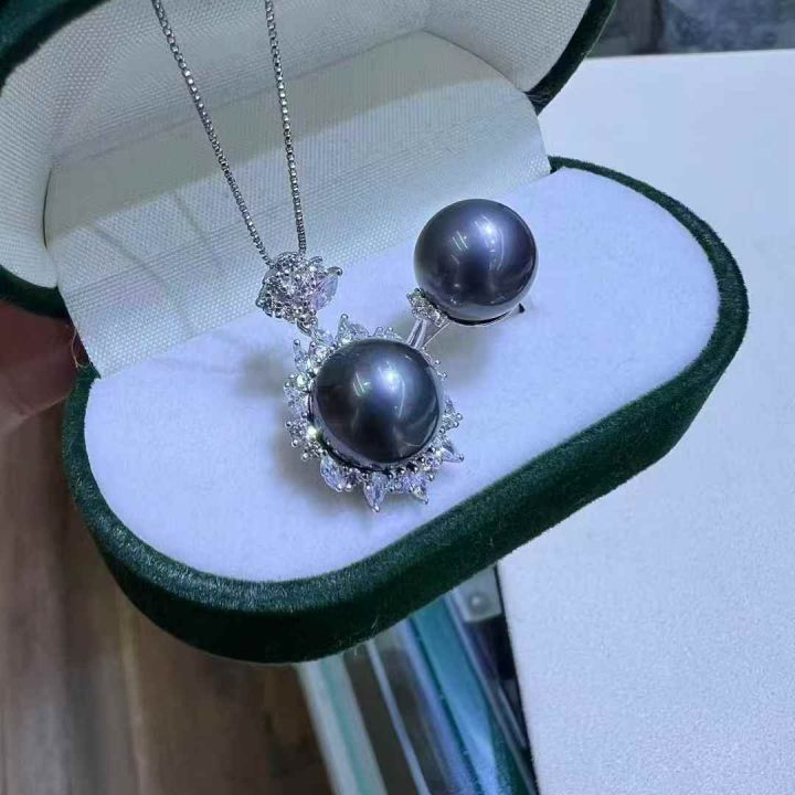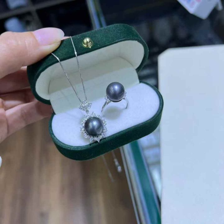 大溪地海水珠吊坠➕戒指天然原色海水珠11mm左右,丝滑细腻微瑕,这珠光足矣忽略它的瑕疵,s925通体纯银吊坠戒指镶嵌。 货号:2978