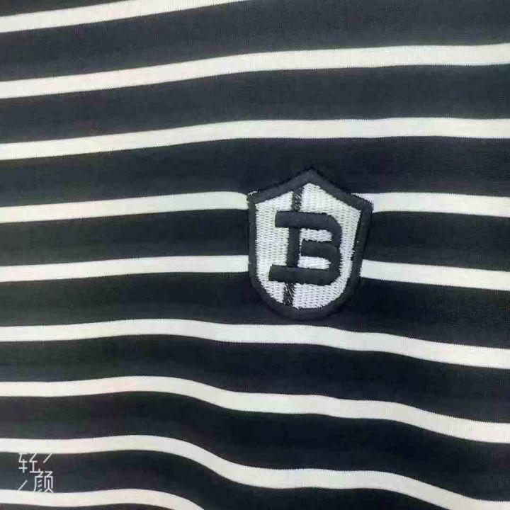 夏季修身圆领透气条纹刺绣短袖男装T恤,码数2.4.6M.L.XL,面料牛奶丝,独立包装拉链袋包装,货品干净,91件全清6.8元