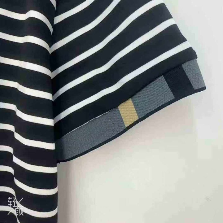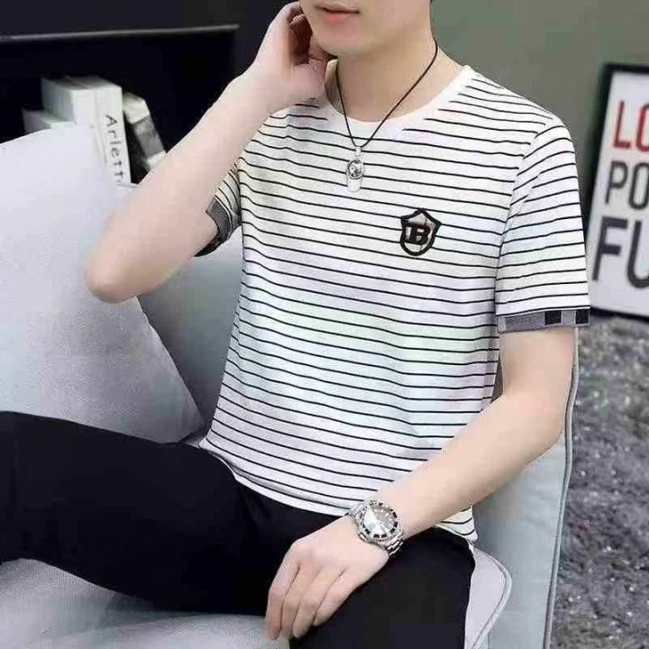 夏季修身圆领透气条纹刺绣短袖男装T恤,码数2.4.6M.L....