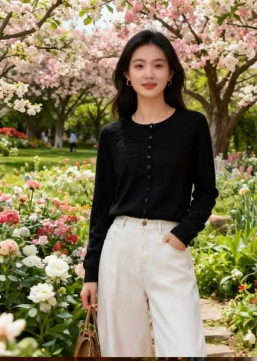 秋季新品弹力修身显瘦长袖针织纽扣毛衣开衫,独立包装...