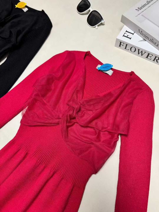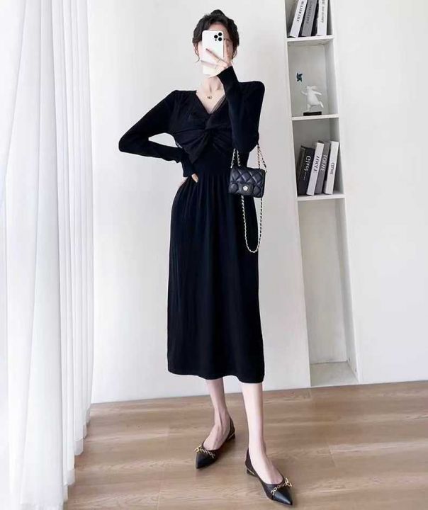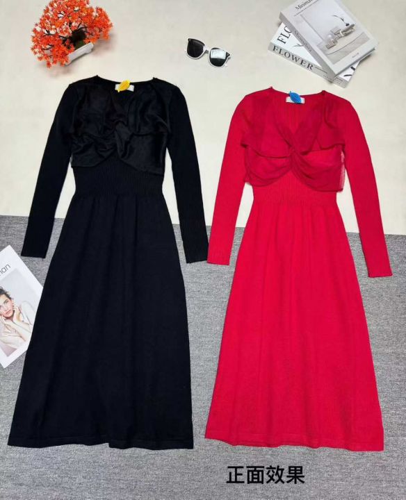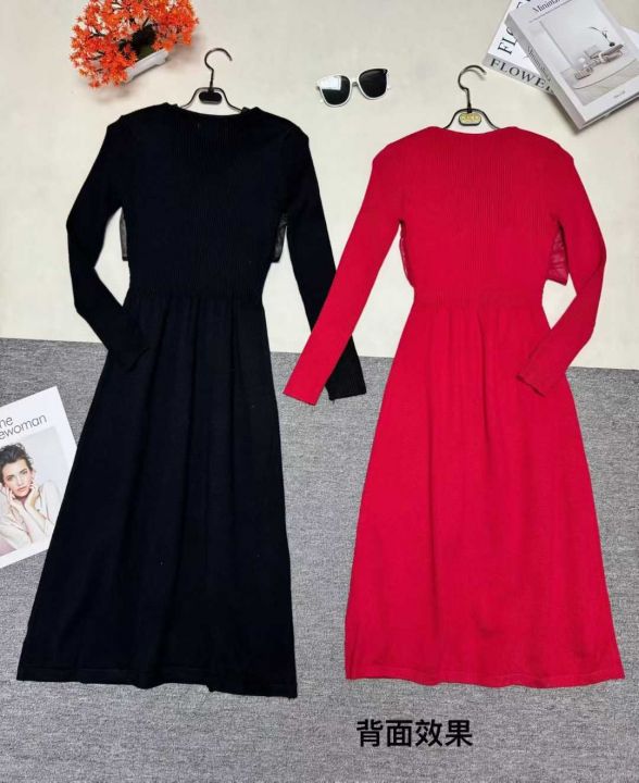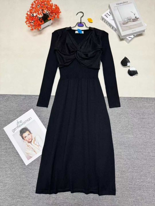 155件 法式秋冬包芯纱打底内搭拼接针织毛衣过膝连衣裙...