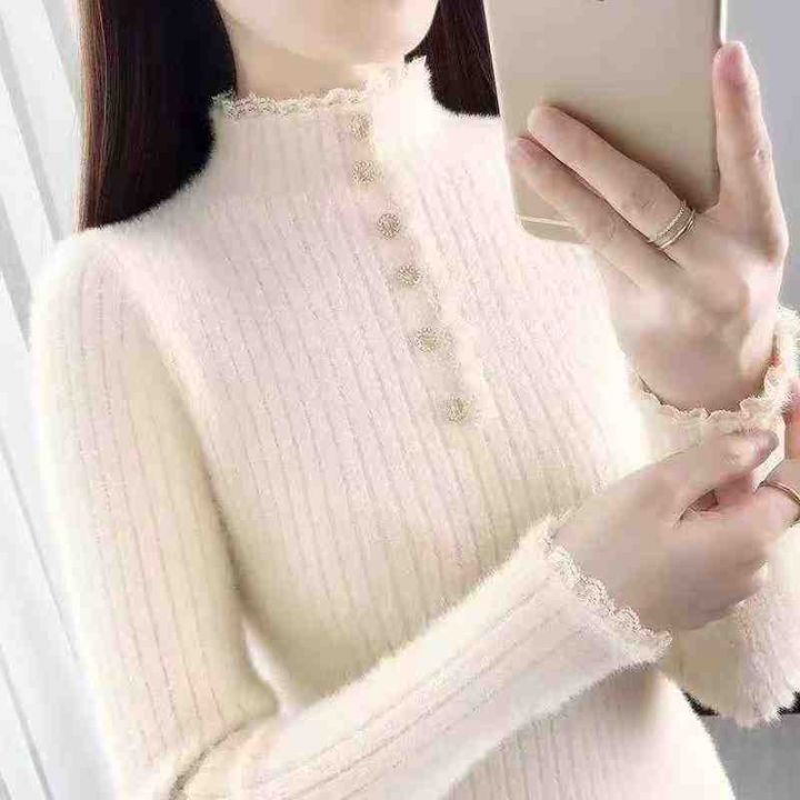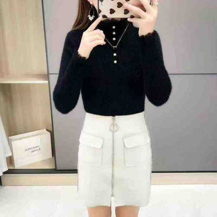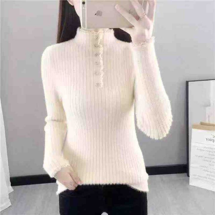690件,2025年多巴胺半高领水貂绒针织上衣,秋冬季修身纯色百搭,均码大弹力,实体店品质面料柔软舒适,独立包装