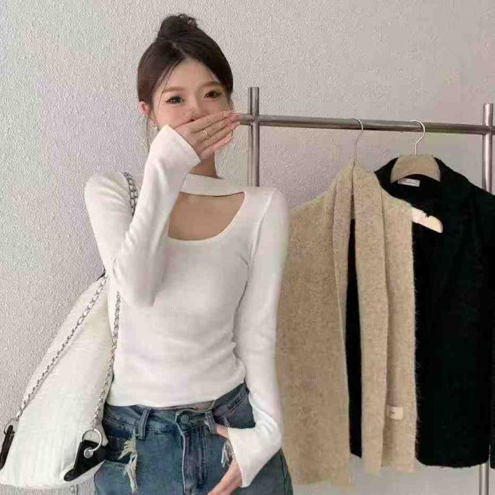 8.8请160件女装辣妹新款纯欲挂脖针织衫,面料软糯手感...