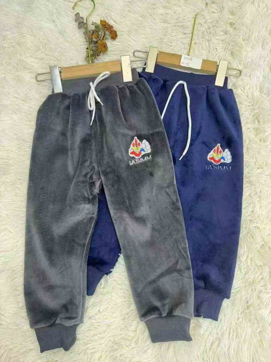 双面阳光绒童装休闲裤,刺绣工艺图案,码数M L XL,数...