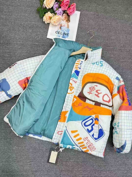 300左右\'两面穿涂鸦立领棉衣女冬季潮流chic加厚棉袄...