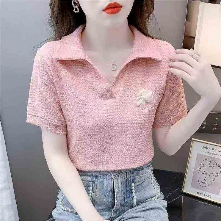 35件,短袖t恤女2025年新款夏季小众设计感polo翻领衫法式上衣带领女装,独立包装,全清5.8元