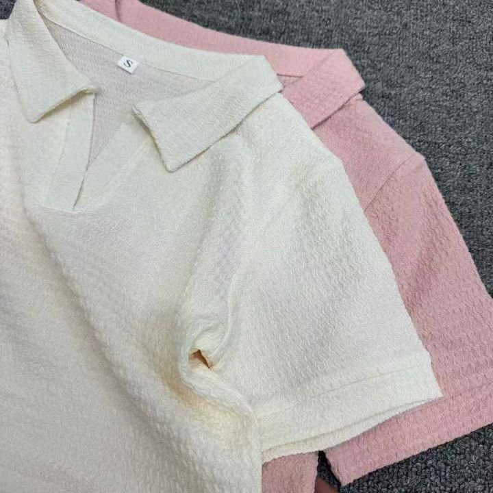35件,短袖t恤女2025年新款夏季小众设计感polo翻领衫法式上衣带领女装,独立包装,全清5.8元