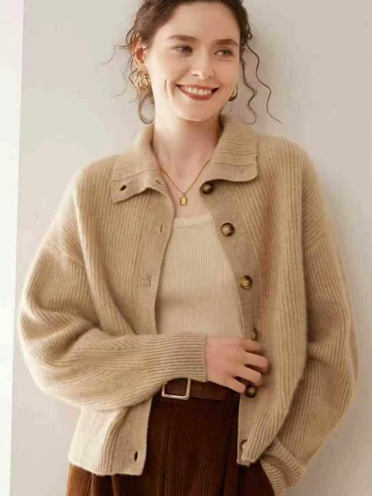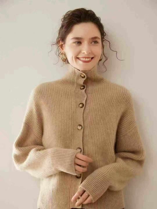 全清13.8,奥莱专柜高品质针织衫女100纯毛衣高端立领宽松加厚针织开衫外套,单款单色,颜色以图5为准,均码26件