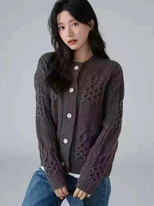 全清13.8,画风drawwind绞花圆领针织开衫外套...