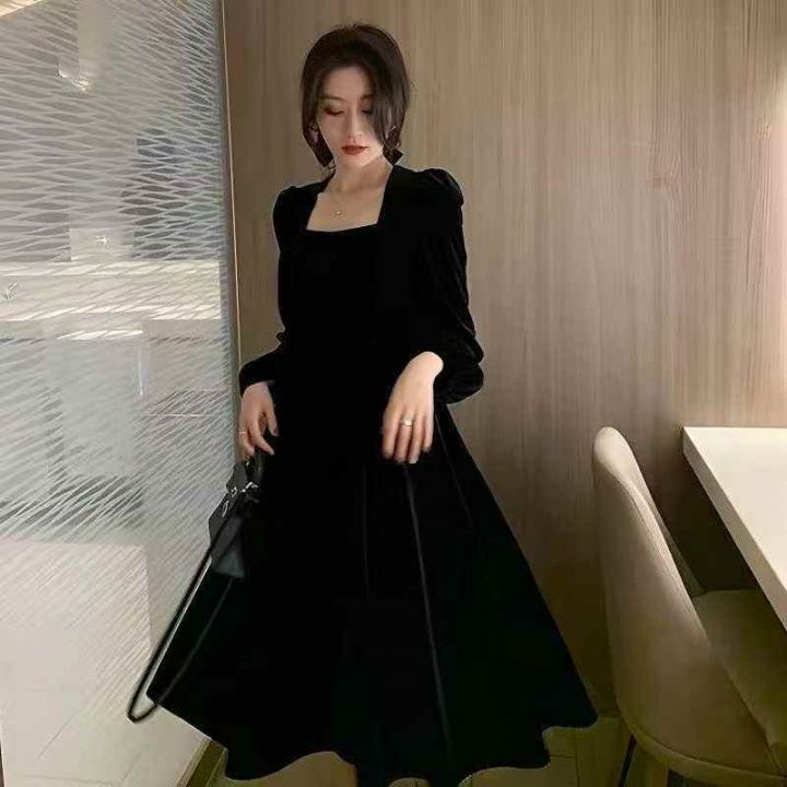 226件早秋冬法式小香风小礼服赫本风小黑裙金丝绒秋冬...