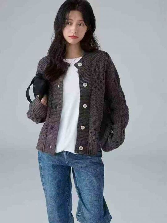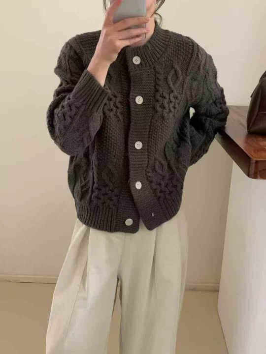 全清13.8,画风drawwind绞花圆领针织开衫外套...