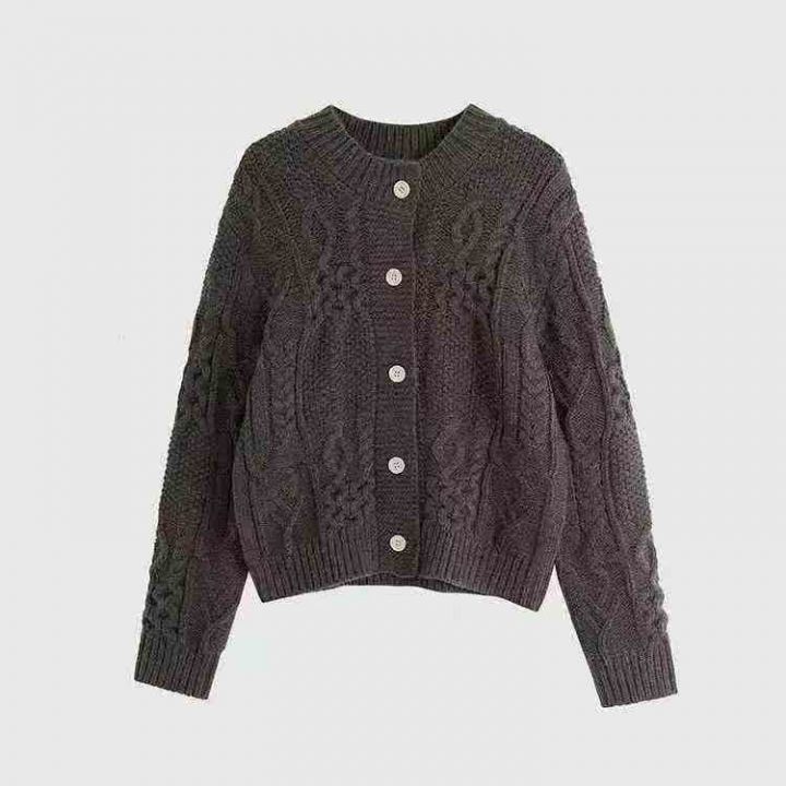 全清13.8,画风drawwind绞花圆领针织开衫外套女2025新款秋季针织衫黑色毛衣上衣,单款单色,均码22件