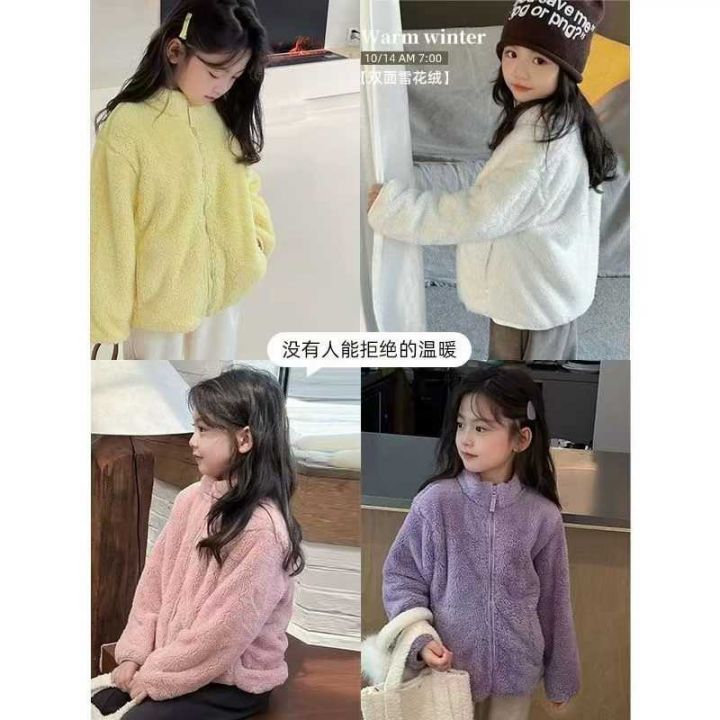 秋冬新款珊瑚绒保暖男女童童装拉链外套,独立包装,码...