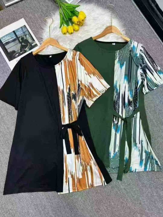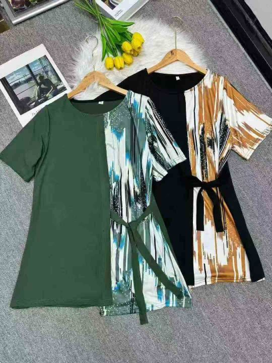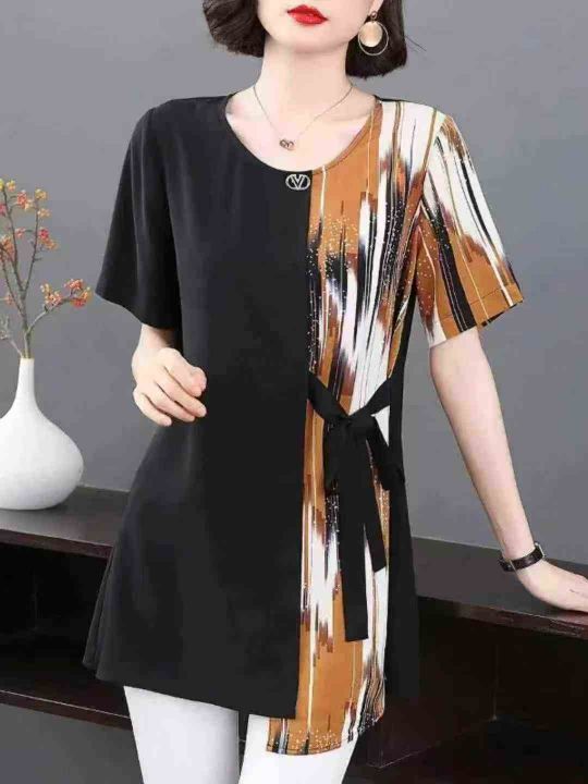 捡漏121件时尚气质短袖t恤新款中长款百搭显瘦上绑带收腰上衣,独立包装,码数M-3XL,货号1024#51