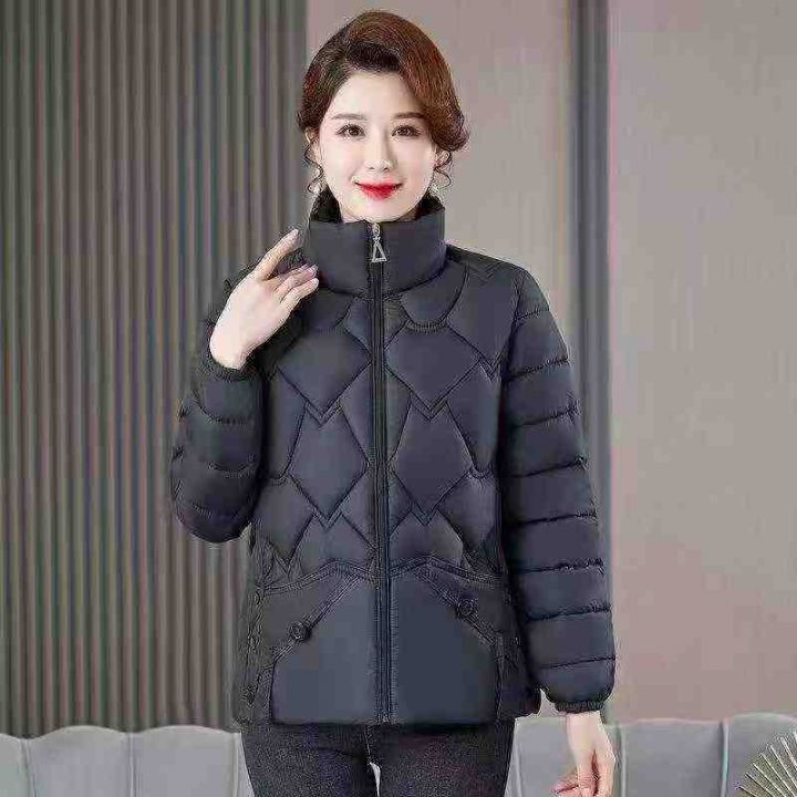 秋冬羽绒棉衣中老年妈妈女士洋气立领时尚轻薄棉服(黑...