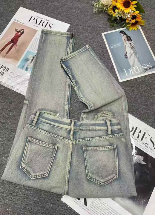 秋季新品复古做旧男女同款美式高街设计感直筒破洞窄版阔腿牛仔裤,独立包装,码数L--XL码,160件左右,全清10.8元超低价秒杀!