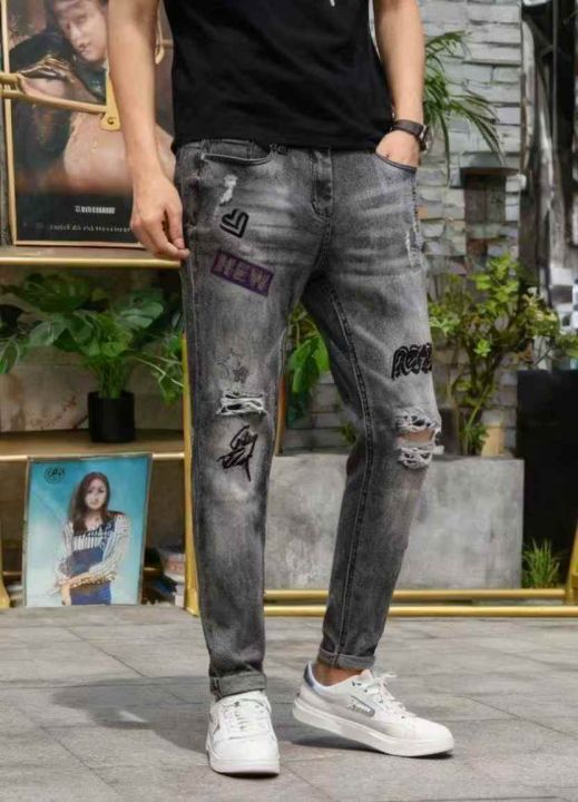 秋季新品高弹力男士重工烫钻刺绣设计款牛仔裤,独立包...