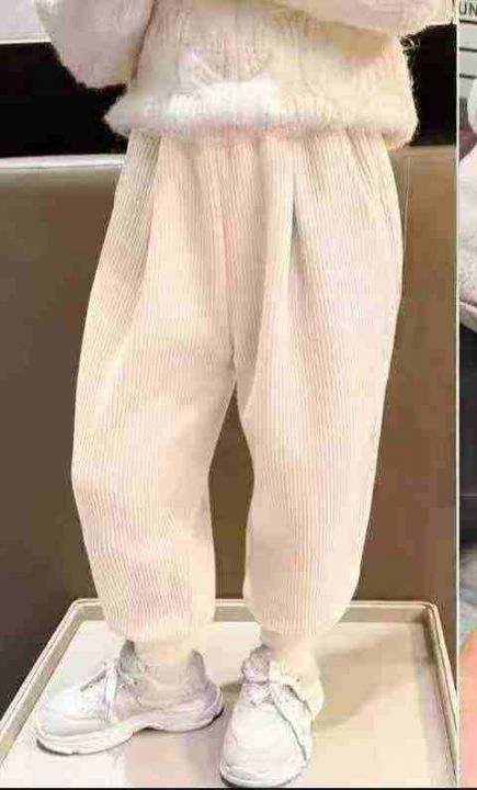 加绒童裤,雪尼尔复合一体绒松紧腰有口袋运动休闲保暖童装裤子,965件,白...