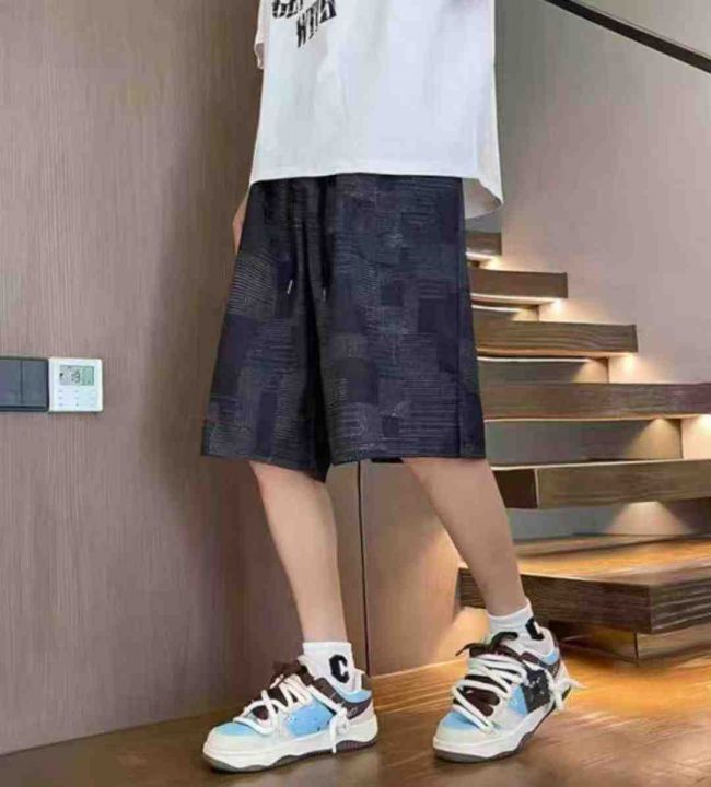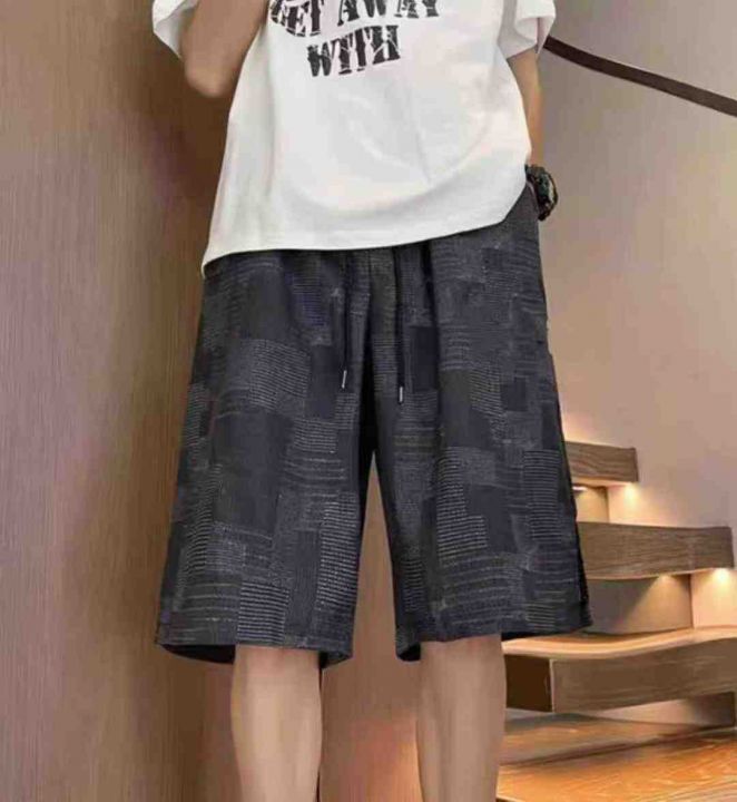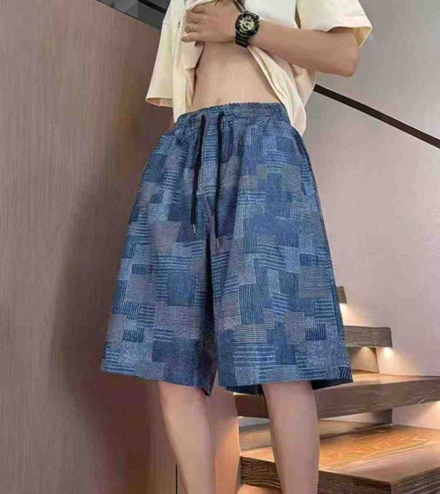 夏季新款宽松百搭提花设计款松紧腰牛仔短裤,独立包装...