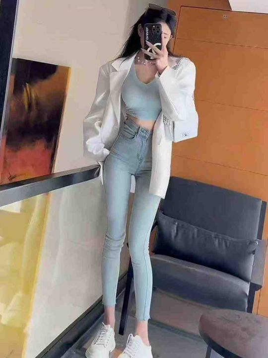 秋季新品品牌原单高弹力洗水棉牛仔弹力小脚裤,独立包...