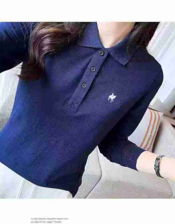 ☕️高品质品牌好货纯棉女装翻领POLO刺绣长袖T恤3110...