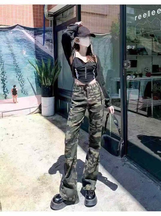 秋冬新款高品质洗水棉网红复古迷彩工装牛仔裤,独立包...