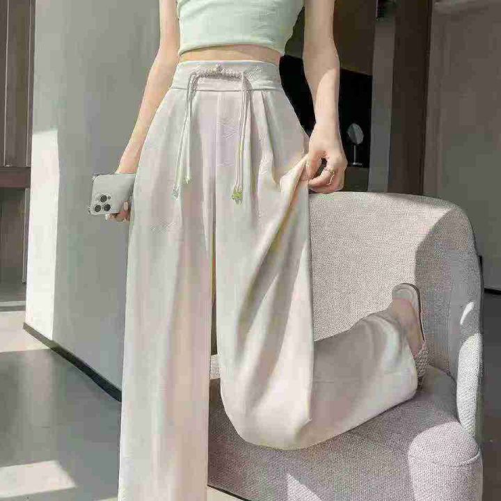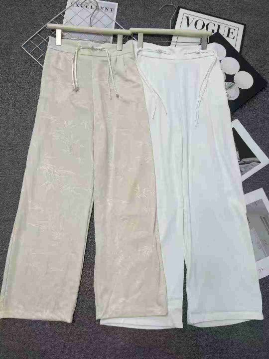 ☕️次品亏本处理!数量210条全清2.8元,独立包装,白色部分小脏染色,不影响穿着,热销款s到xxl,两个款,新中式国风提花缎面西装阔腿裤女宽松显瘦冰丝直筒休闲裤