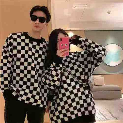 [庆祝]57件男女宽松时尚潮流棋盘格长袖卫衣,独立包装SML码,特价秒杀8.8元...