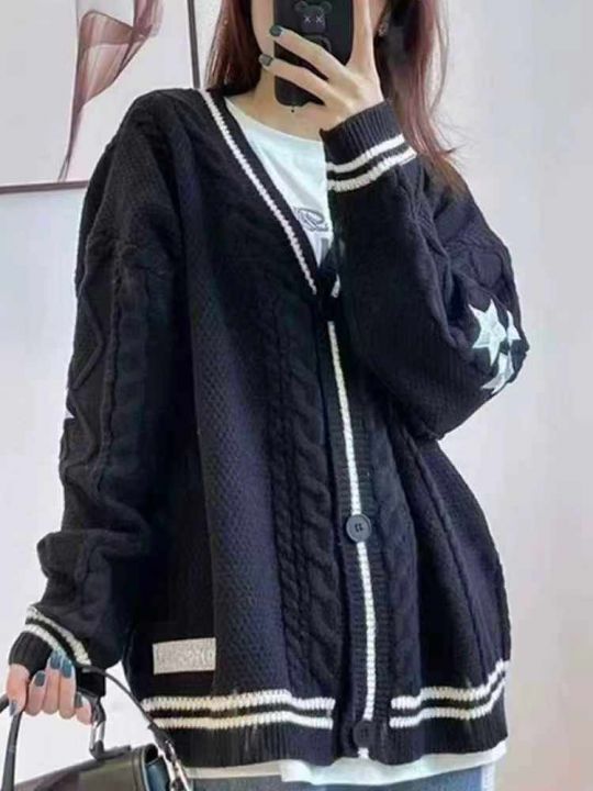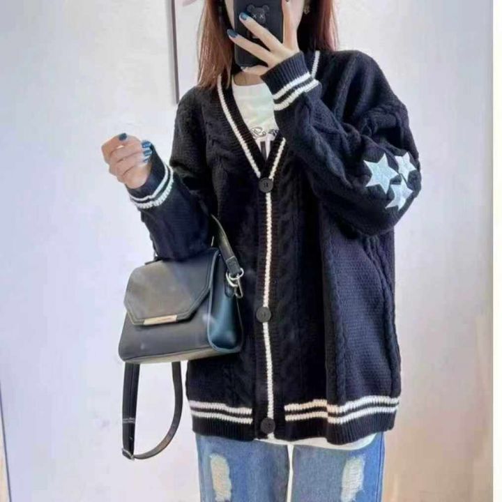 秋冬新款宽松慵懒风刺绣麻花设计款毛衣开衫,独立包装...