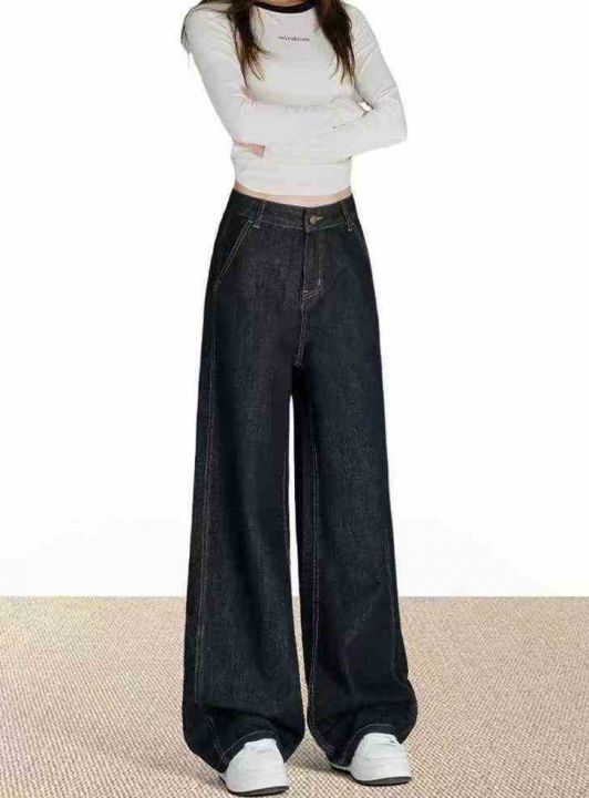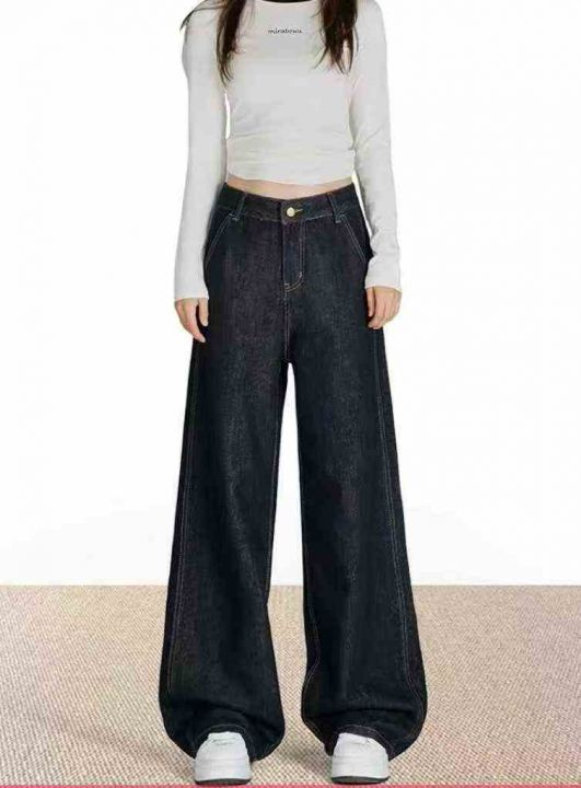 秋季新品复古女装直筒大阔腿牛仔长裤,独立包装带吊牌...