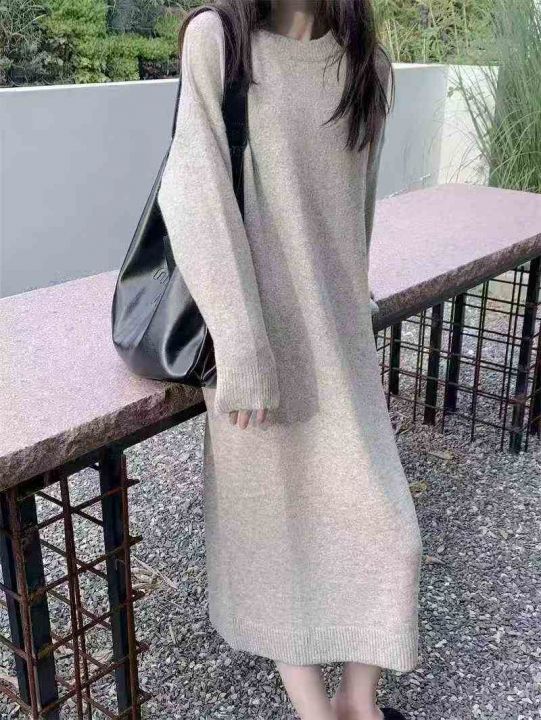 秋冬新款法式复古宽松简约中长款毛衣连衣裙,独立包装...