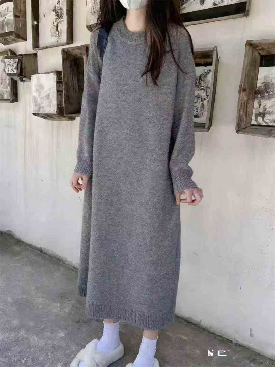 秋冬新款法式复古宽松简约中长款毛衣连衣裙,独立包装,均码面料软糯厚实,287件,全清8.9元超低价秒杀!