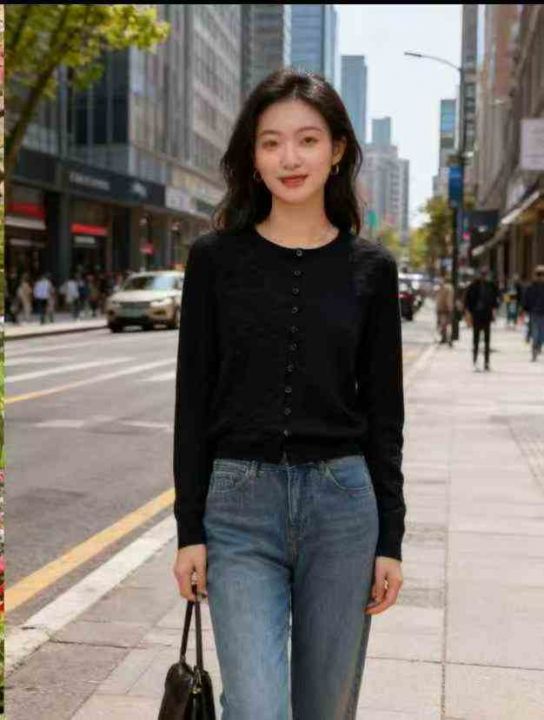 秋季新品弹力修身显瘦长袖针织纽扣毛衣开衫,独立包装...