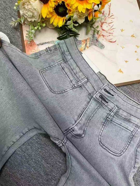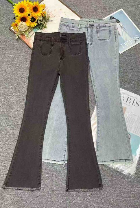 早秋季新品高弹力女装洗水棉毛边微喇叭牛仔裤,独立包...