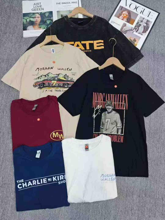 电商仓回收570件美式复古潮牌男女同款纯棉重磅短袖T恤,码数XS-3XL。后领包边到肩,很多都有AB面图案款式好看,100%纯棉品质超好,独立包装。分货➕1
