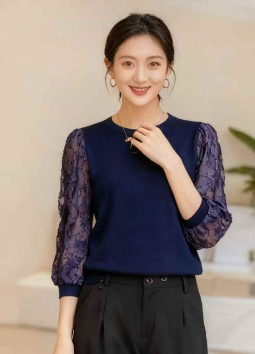 品牌原单弹力宽松显瘦轻熟女装拼接圆领套头毛衣,独立包装带吊牌,码数XS--...