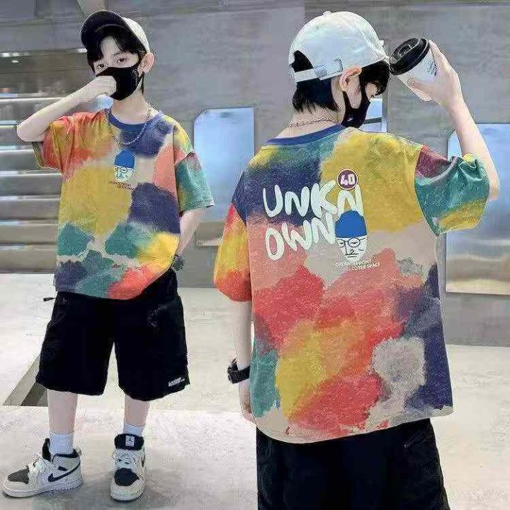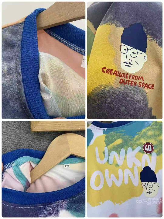 童装扎染短袖1393件3.9,面料有弹力,图案印花,码数9...