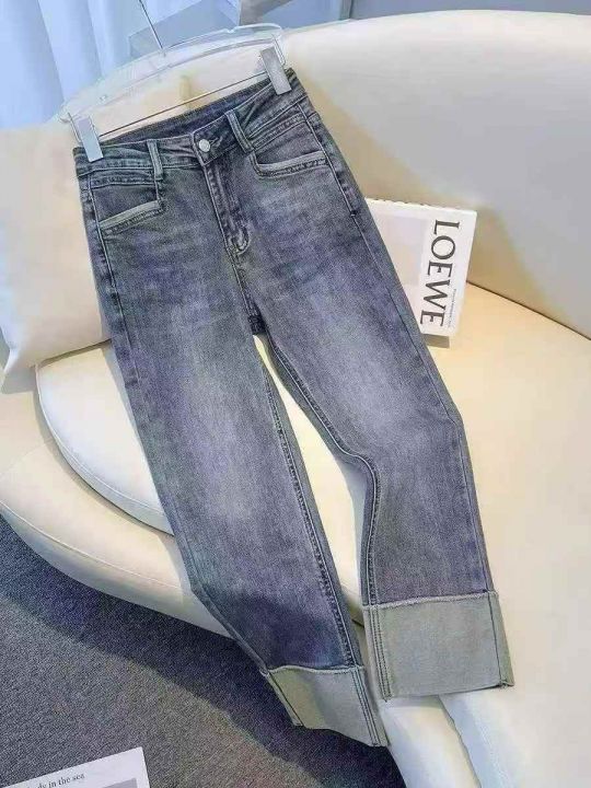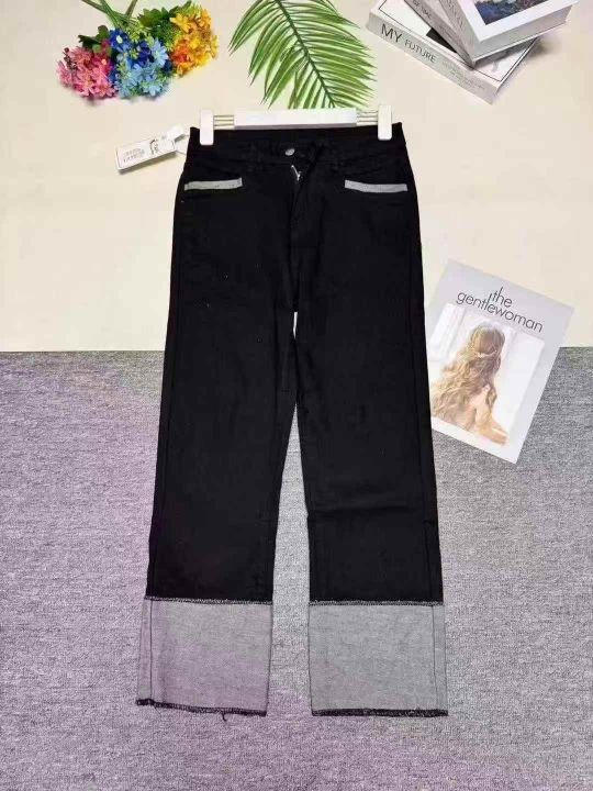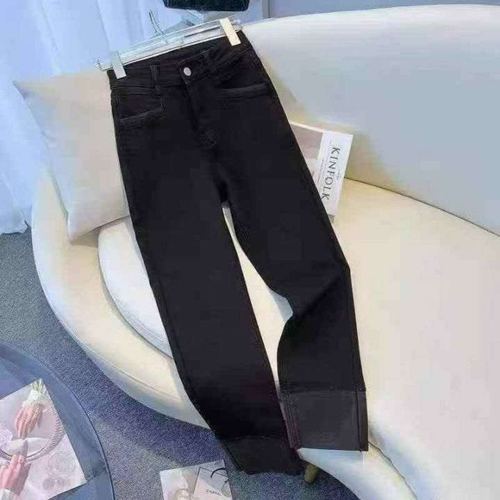 春装显瘦裤子黑色烟管裤宽松高腰九分直筒牛仔裤570件,整款两色,码数:S-5XL,有弹力,品质好可入实体店,独立包装带吊牌,全清7.8元秒,分货➕1。