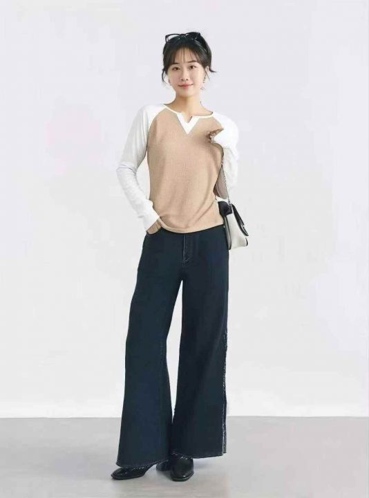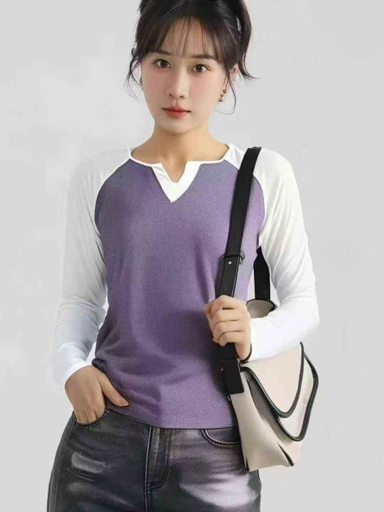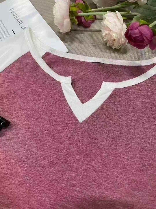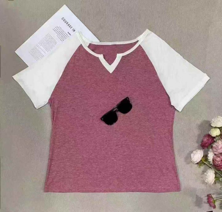 900多件辣妹撞色v领插肩袖时尚气质休闲百搭t恤上衣 ,...