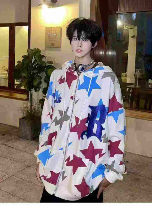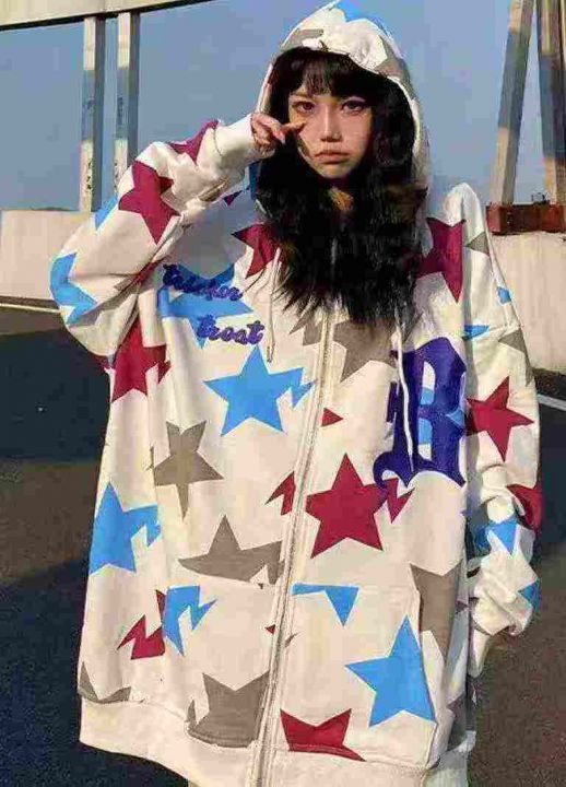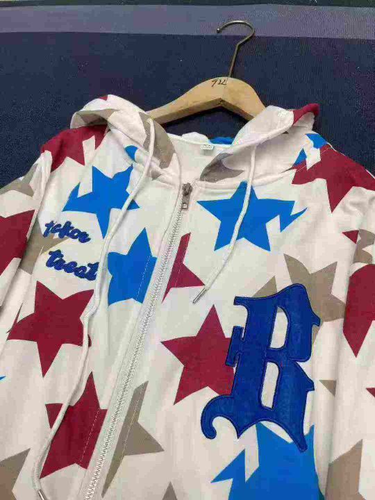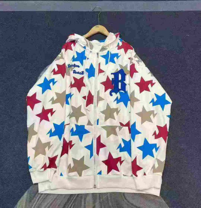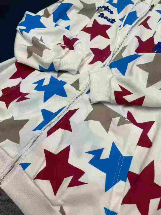 天猫在售款110件左右高品质秋冬美式潮牌男女同款满印星星拉链连帽卫衣,码数M-2XL,单款单色,独立包装