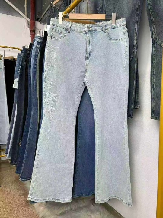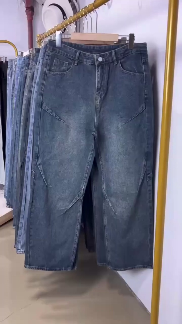 外贸款。高品质微喇叭弹力阔腿牛仔裤数量大约400条图片类似风格尺寸S-3XL码...