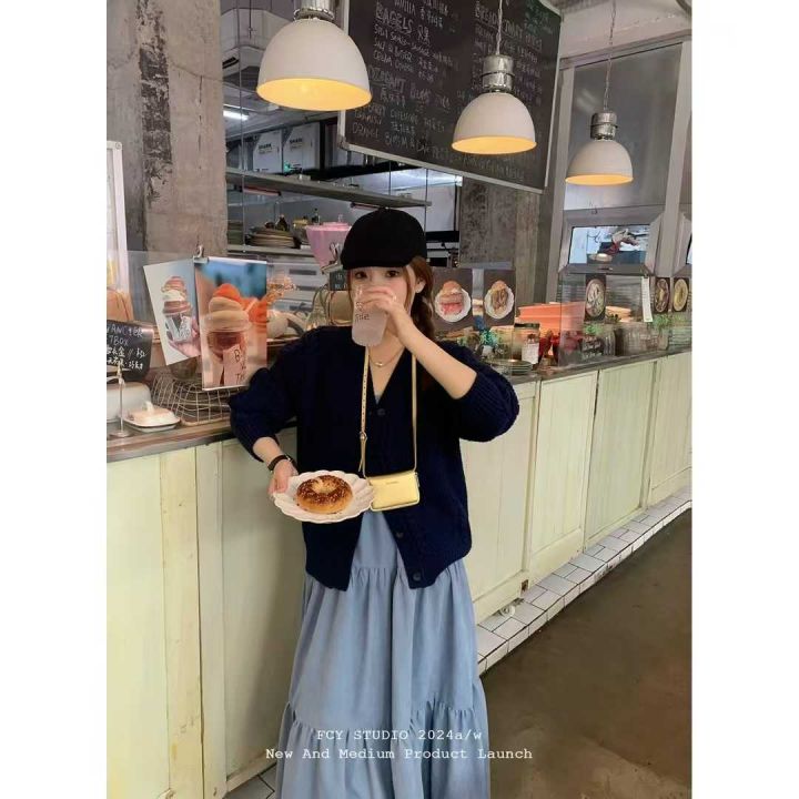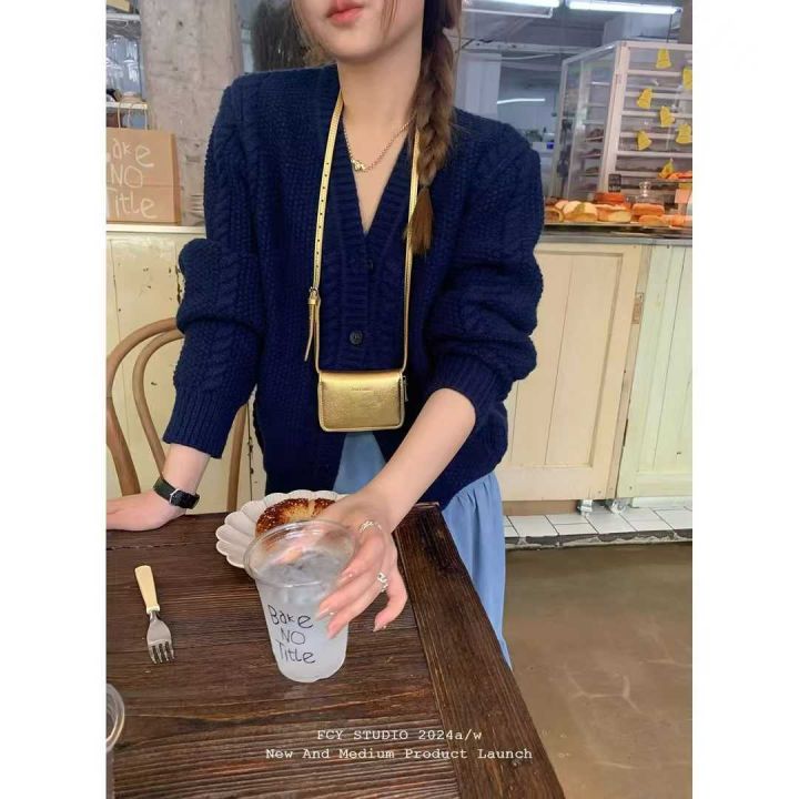 全清13.8,FCY studio藏青色毛衣外套女大版2025秋冬气...